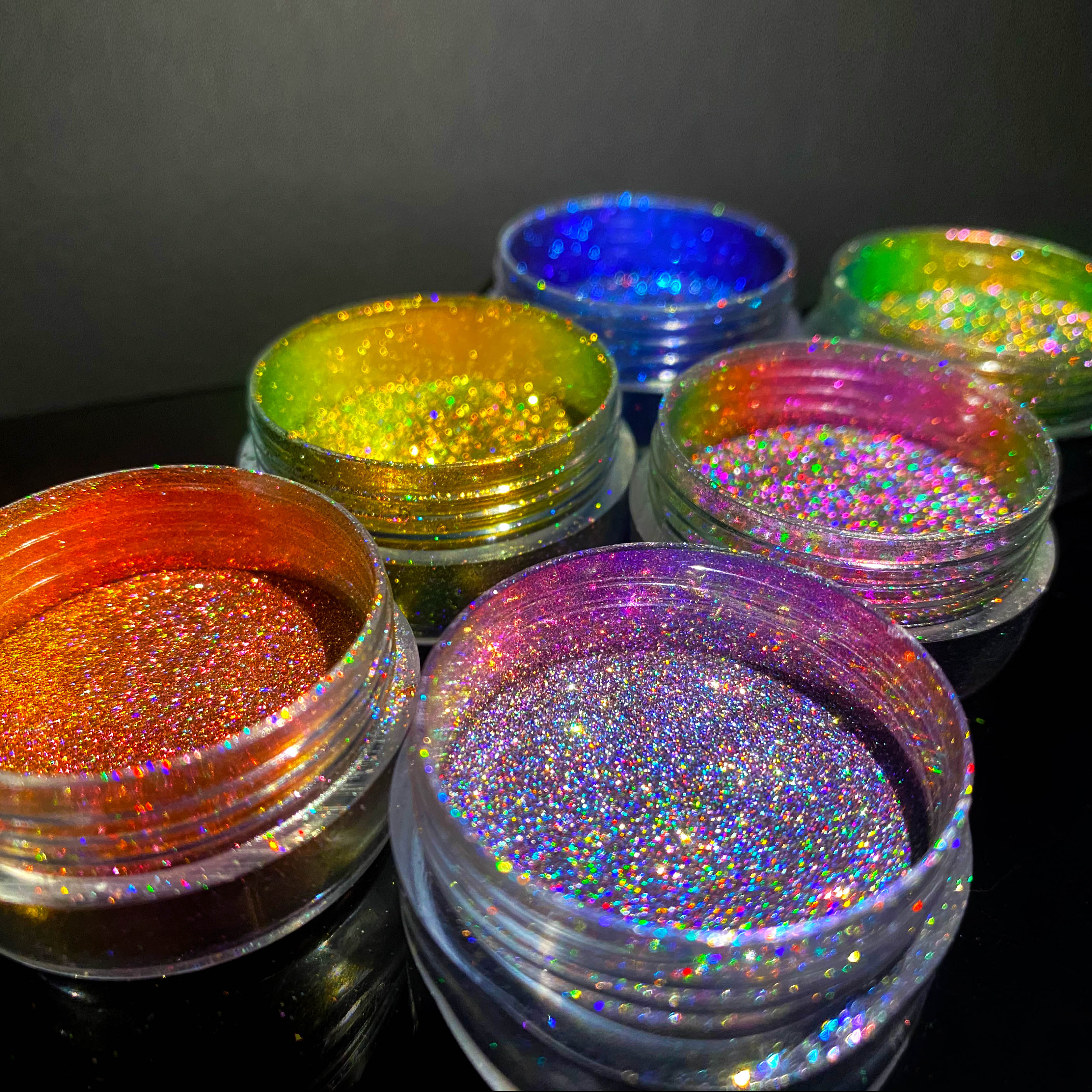 Grau cosmético Dazzling Chameleon Holográfico Aurora Pigmento Rainbow Laser Multicromático Loose Glitter Powder